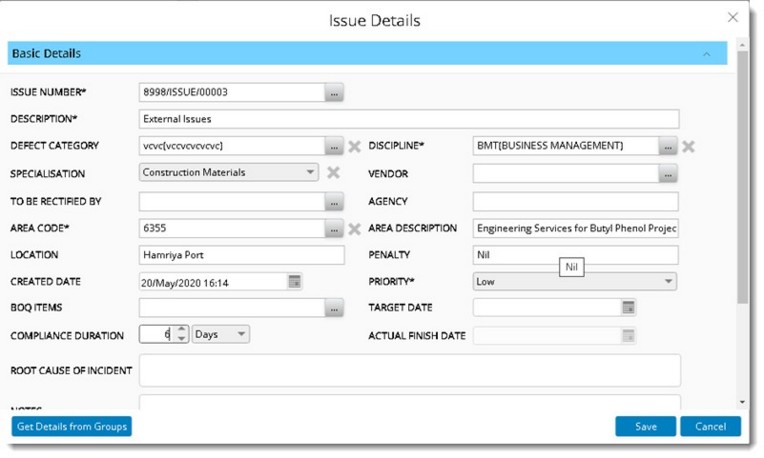Groups helps to define a list of common types of Issues for which default set of characteristics values can be predefined. This will help to create Issues easily instead of specifying values for each Issue properties individually. A group can be assigned to an Issue and the property values as defined for the group will be inherited by the Issue.