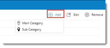 - Select a category and in the tool bar click Add. A menu is displayed.