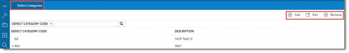 - Select single or multiple defect categories and in the toolbar click Remove.