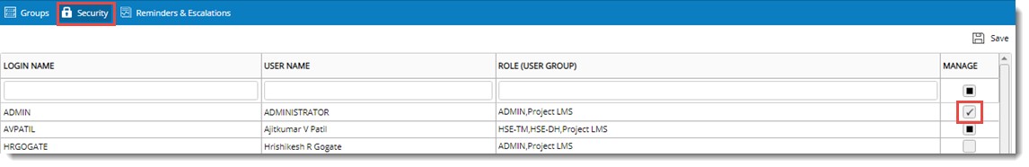Security defined here is applicable to both Users and User Groups (Roles). Only users with security right can manage a snag.