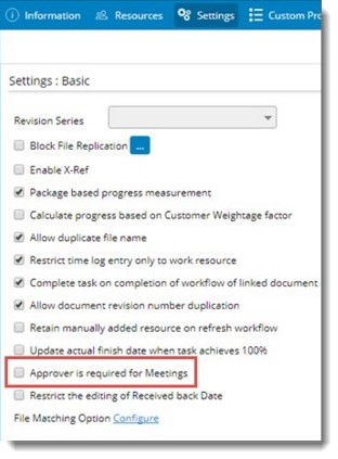 Figure: Setting in Project for enabling requirement of meeting approval