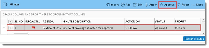 - In the Minutes pane after selecting the minutes of meeting click Approve.