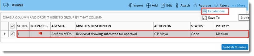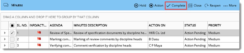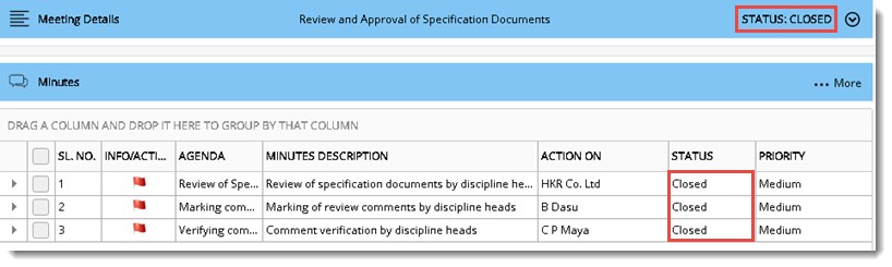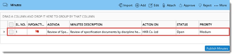 Minutes is published successfully. Status of the Minutes changes to Action Pending.