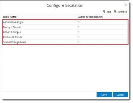 - Enter a value for ALERT AFTER. Value should be entered in hours. Escalation will be sent after the time specified here.