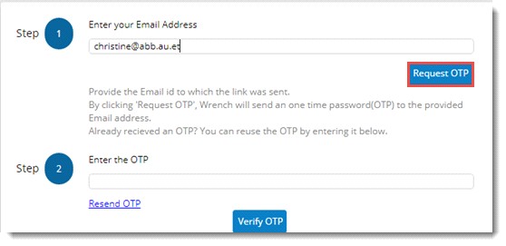 - Enter your email address and click Request OTP.
