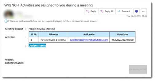 - Click Update Status to open the meeting details window and update minutes for which the user is added as “Action on” users.