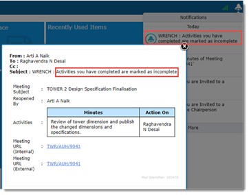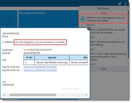 Once minutes is published, notifications are sent to all participants who have attended the meeting. In the notifications pane when the notification is clicked by the user following window is displayed.