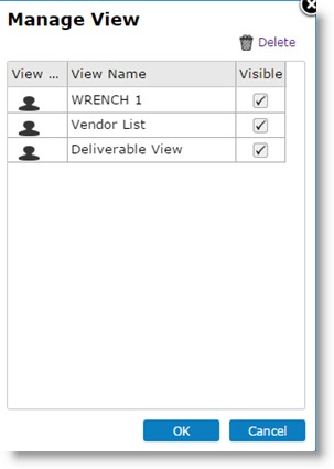 - Here you can delete a view and make a view hidden by clearing the check box. The views can be made visible by selecting the check box.