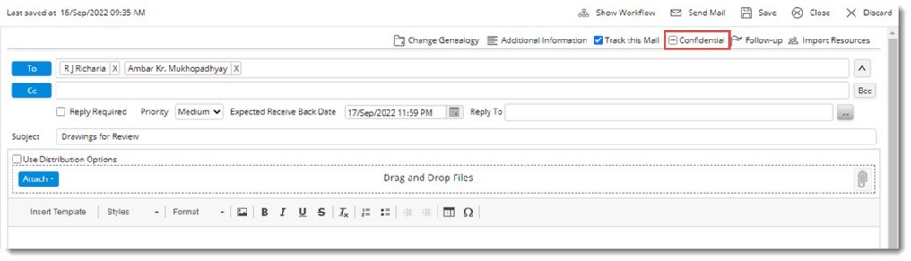 Figure: Marking correspondence as confidential
