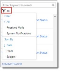 Notifications can also be sorted based on date received, subject and source from which the notification is generated. Also notifications can be searched by entering a search string in the search area.