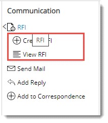 In the document smart folder and document details window, option to create RFI will be available under the group Communication.