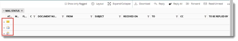 It is possible to group correspondence smart folder data in the grid using columns where the mail status is represented by images. Also confidential mails can also be grouped.