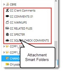 Smart Folders for different attachments are indicated by different folder icons or legends as displayed in the following figure. This helps in organizing and managing different types of attachments easily,
