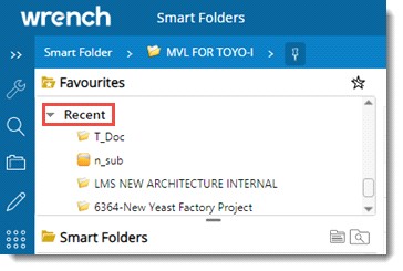 Recently accessed smart folders are listed based on the count defined for the setting Number of items in recently opened lists’, in WRENCH Desktop version.