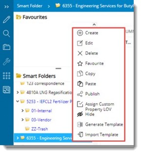 Copy: Click this option after selecting a folder to copy the folder and its contents. When a new project is created, user will copy the existing smart folder and paste it to the new project being created and rename the folder.