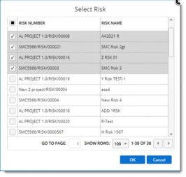 Select Risk window is displayed. Created risks are displayed here.