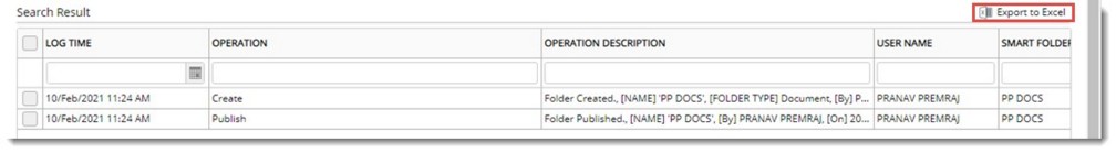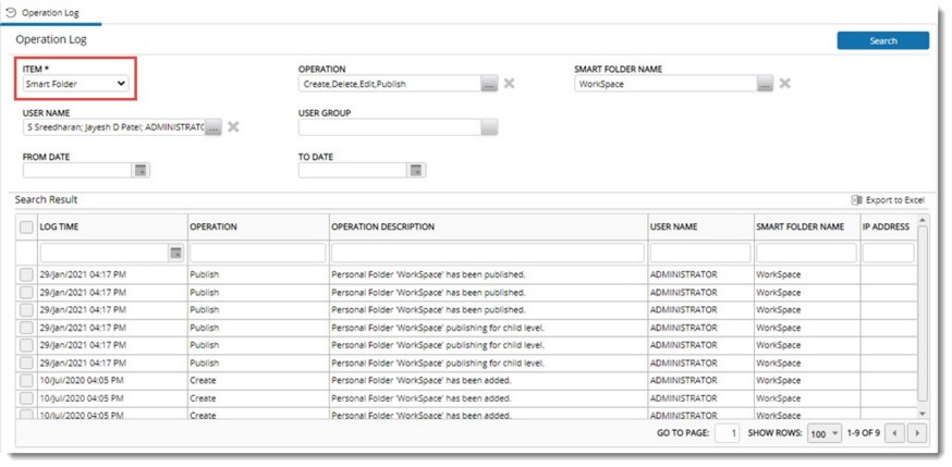 Figure: Operation Log for Smartfolder