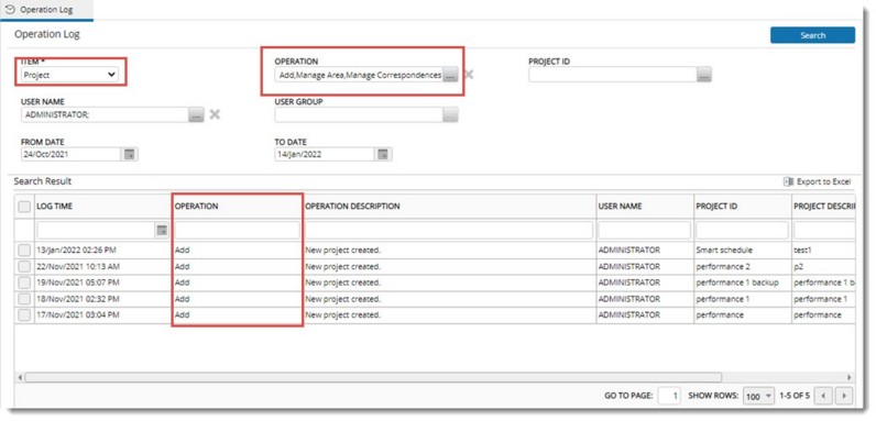 Figure: Operations log report for Project
