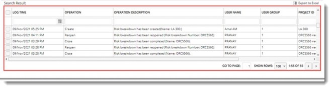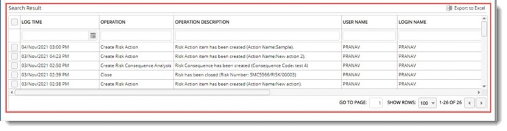 Generated log is displayed in search results grid.