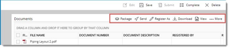 Package: You can select documents in the grid and create a package. For more information refer Creating a document package.