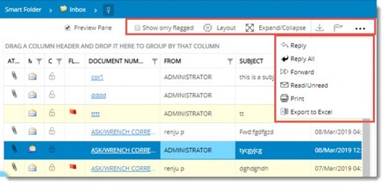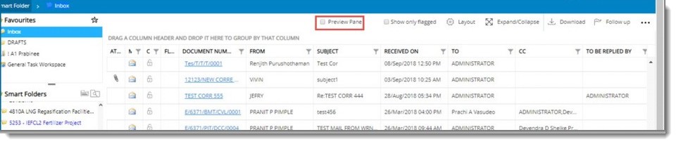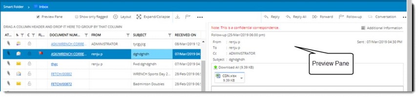 Option to preview items will be available for all Correspondence smart folders (Inbox, Drafts, Reply Pending, Sent Items and Related Correspondence.)