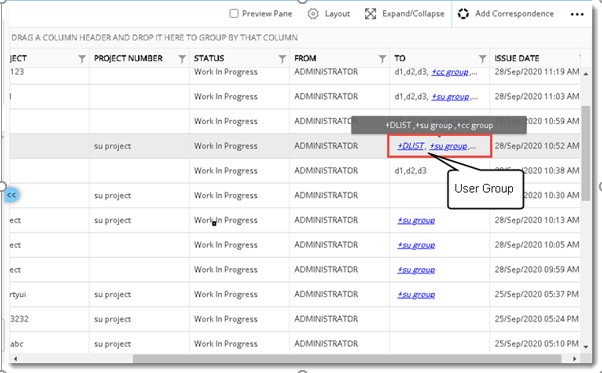 In the To and Cc columns, if groups are added as recipients, user groups or distribution lists are displayed.