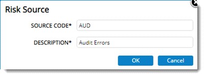 New Risk Source is displayed in the grid. You can edit the created risk source and remove a risk source provided it is not used in any Projects.