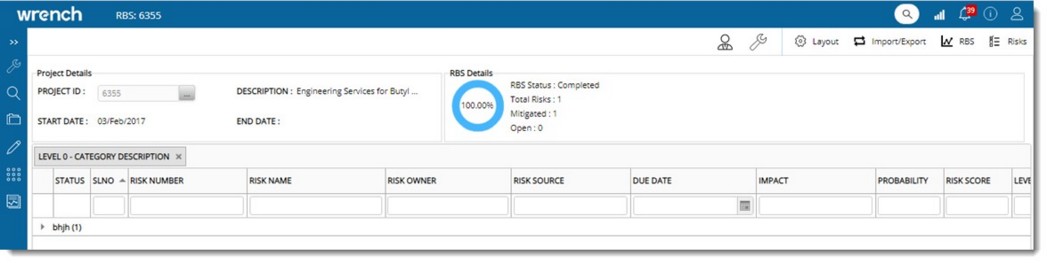 RBS Details: RBS details displays the risk mitigation status. The following information will be available here.