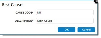 - Click OK to save changes. Risk Cause Saved message is displayed.