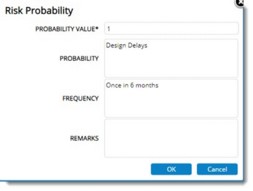 Enter the frequency of occurrence of a risk within the specified probability. For Example: ‘2 times a year’, ‘Once in a decade’ etc.