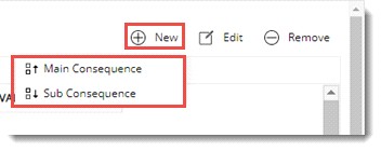 In the pop-up menu two items Main Consequence and Sub Consequence will be available. Main Consequence can be used to create a new risk consequence at the first level of the hierarchy and Sub Consequence can be used to create a sub consequence under a selected consequence.