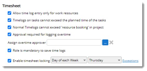 If the checkbox next to this option is selected, timelog entry is permitted for a user only based on the resource booking combination defined in the Project/WBS. |