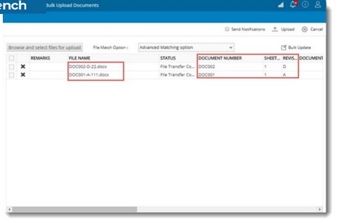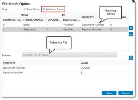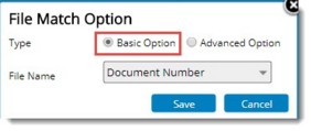 File matching options for documents in a project is configured using this option. Matching options can be configured using basic or advanced options. Now when you replace documents in bulk using the Update option, the matching option defined here will be available in the File Matching Options of Bulk Upload Documents window.