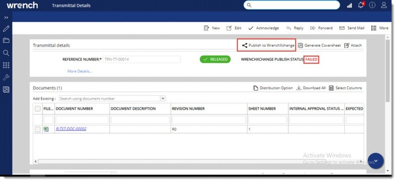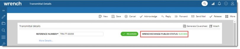 If the transmittal type selected have the setting Publish documents to WrenchXchange on transmittal release enabled, when the user releases the transmittal, all the documents attached (as per the transmittal distribution option) in the transmittal will get published to the WrenchXchange server automatically.