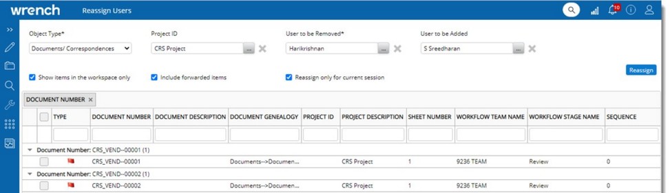 There are scenarios where a resource is replaced by other resource in an organization due to various reasons. As a result, the works also needs to be reassigned to the new user. Hence a facility to reassign the objects from one user to another user in bulk is provided.