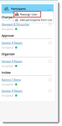When the resources assigned to an action items are no more available in the organization, it is required to reassign resources for Meetings.