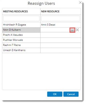 User will be reassigned with the selected ‘Meeting resource’, and all the meeting responsibilities of the ‘Meeting Resource’ who is reassigned, will be transferred to the ‘New Resource’