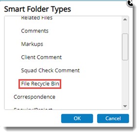 - In the Smart Folder Types window under Documents, select File Recycle Bin and click OK. File Recycle Bin Folder is created.