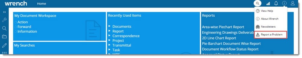 While using WRENCH, user may come up with issues which need to be reported to Wrench Support team from WRENCH, rather than going to outlook and reporting from there.