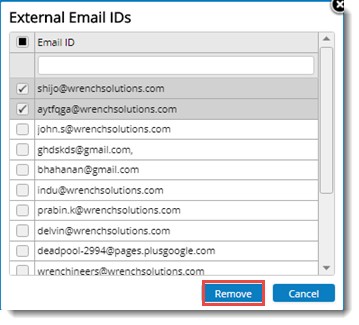 Selected external email ID's will be cleared