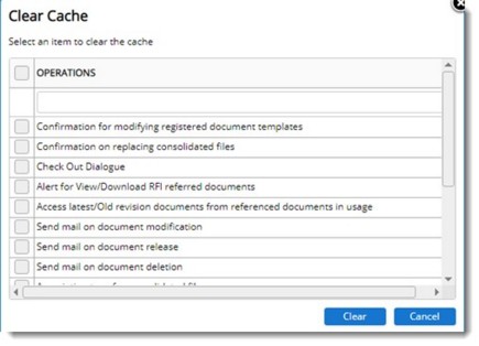 When a file is modified using Upload/Check In option, send mail window for sending mail to users who have created, edited, viewed and copied will pop-up. In the Send Mail window, there is an option to hide this pop-up. Once the checkbox next to this option is selected, from the next instance pop-up will not be displayed. On clearing the cache after selecting this item, alert message will be displayed. |