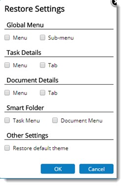 Restore Settings window is displayed. In the restore settings window different settings that can be reset are displayed.