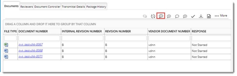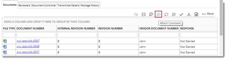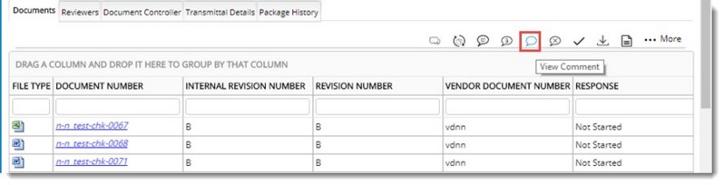 - In the grid select the document for which you want to view the comments attached to it.