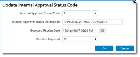 - Select an Internal Approval Status Code from the drop-down list.