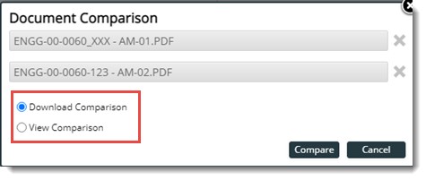 Download Comparison: This option is selected by default. If this option is selected, PDF drawing files are compared by downloading the drawing to a single PDF.