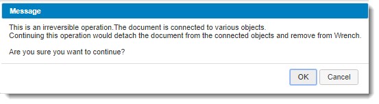 If older revision of the document is selected for deleting, the following warning message is displayed.