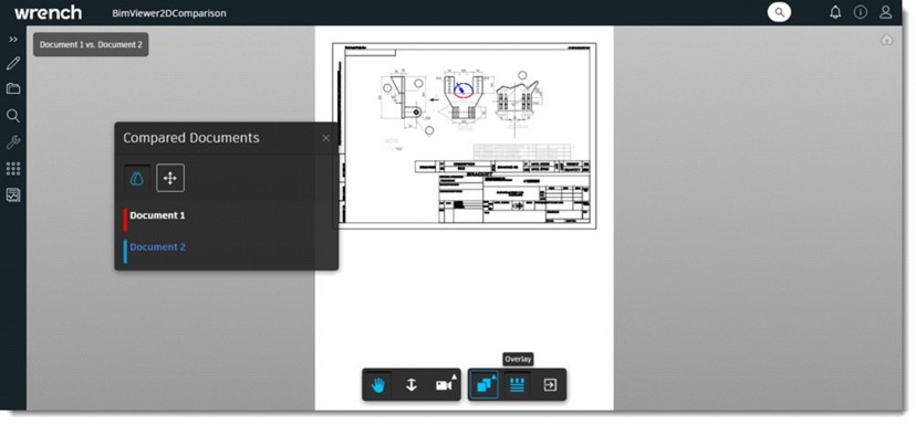 If Forge Viewer is configured, and the user selects the radio button next to ‘View Comparison’ and click the Compare button, the selected drawings are opened in 2D BIM Viewer in new browser tab. The drawings are displayed as an overlay.