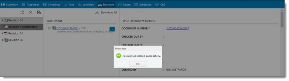 Revision obsoleted successfully message is displayed.
