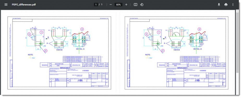 If the user selects the option Download Comparison and click the Compare button, the selected PDF drawings are downloaded as single PDF file. The name of the file will be PDFC_differentces.pdf.
