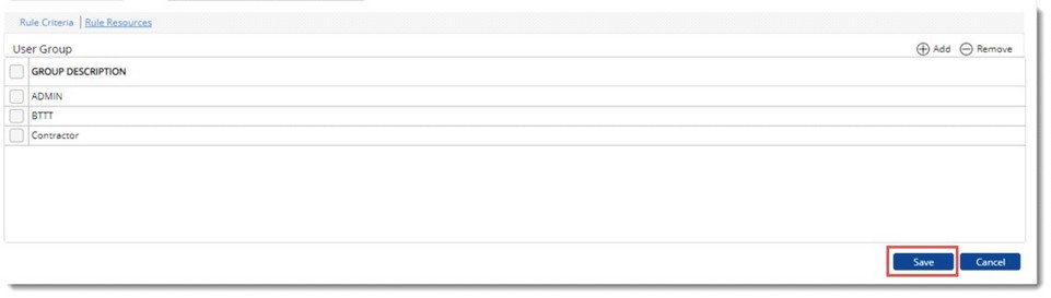 - Click Save to store the rule criteria entered and continue with entering new rule criteria. Ruled Saved Successfully window is displayed.